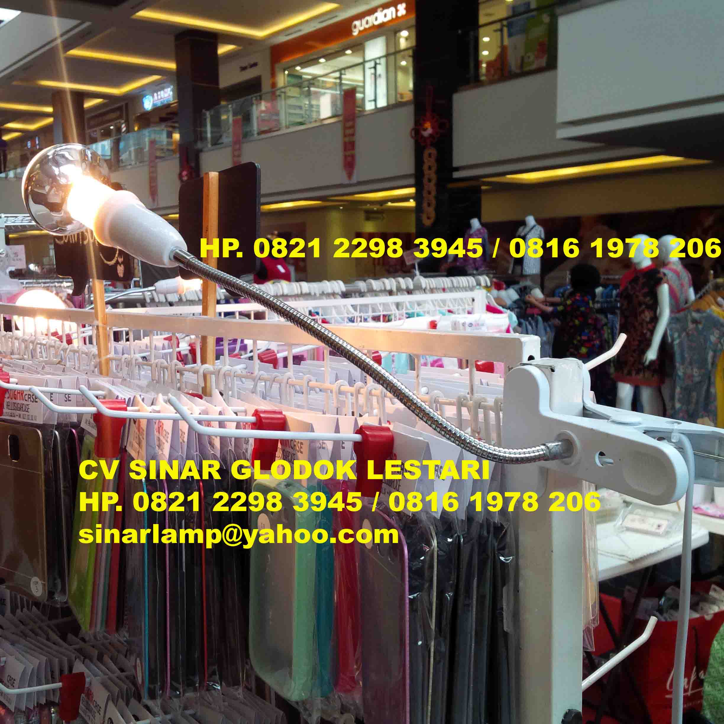 Lampu Jepit Fleksibel E27 untuk pameran baju atau kap rumah lampu model jepit atau lampu jepit serbaguna fitting E27 dengan tangkai fleksibel panjang 30cm untuk counter pameran baju, pameran lukiasan, atau produk pameran di mall, sangat mudah di pasang, hanya di jepitkan di permukaan yg rata seperti rak, meja, estalase rak barang dagangan, dll, dengan tiang fleksibel untuk mengatur arah sorotan lampu pada barang dagangan atau objek yang mau di beri penerangan lampu sorot