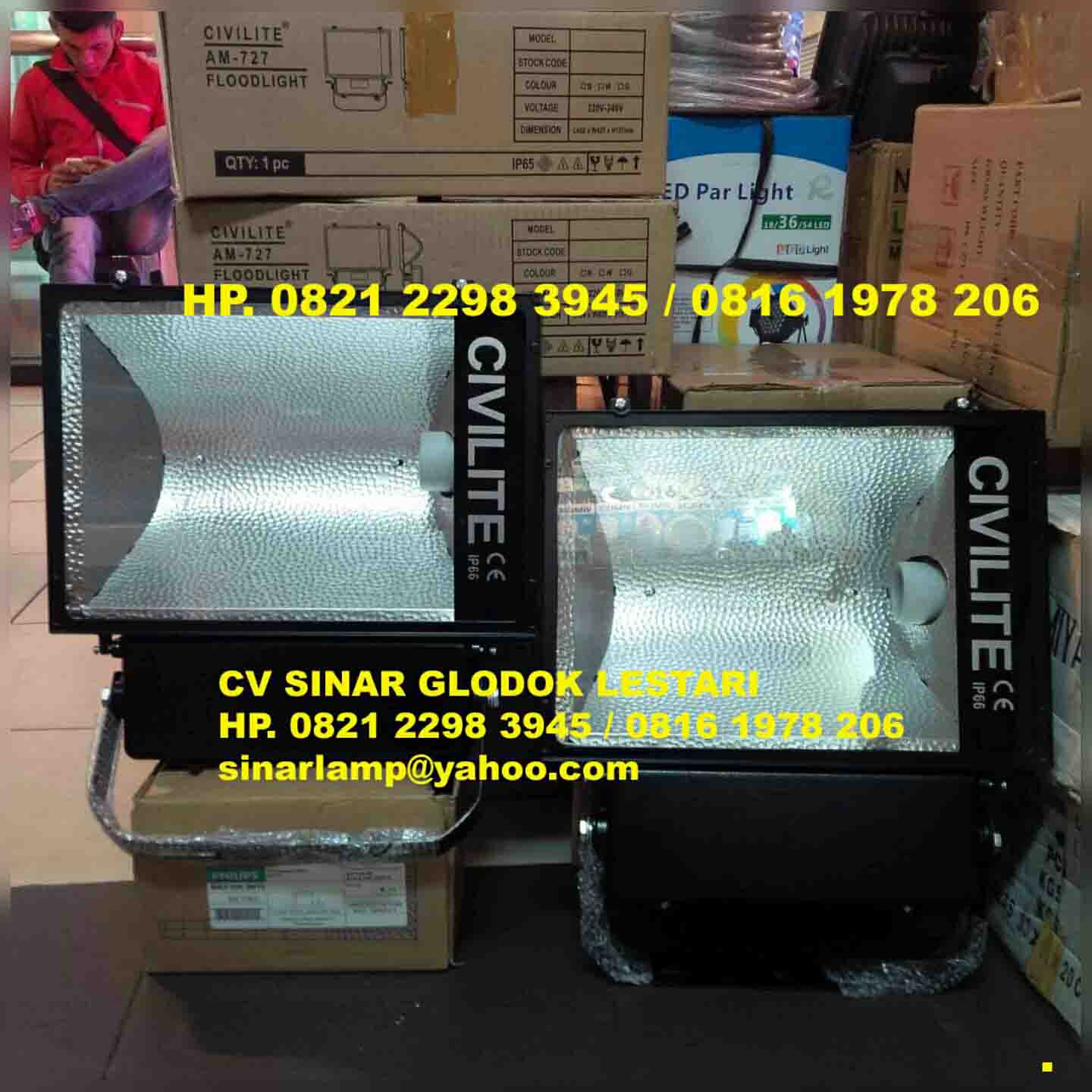 Lampu sorot HPI-T 250 watt - 400 watt merk CIVI LITE, lampu sorot model dan kualitas terbaik, housing aluminium cor tebal, IP65, tahan cuaca hujan dan panas, kuat dan handal, bisa untuk lampu HPI-T 250 watt - 400 watt, sinar cahaya putih atau SON-T 250 watt - 400 watt sinar cahaya kuning, integrated ballast dan ignitor, komponen menyatu dengan rumah lampu, sehingga pemasangan lebih praktis dan simple, harga lebih ekonomis