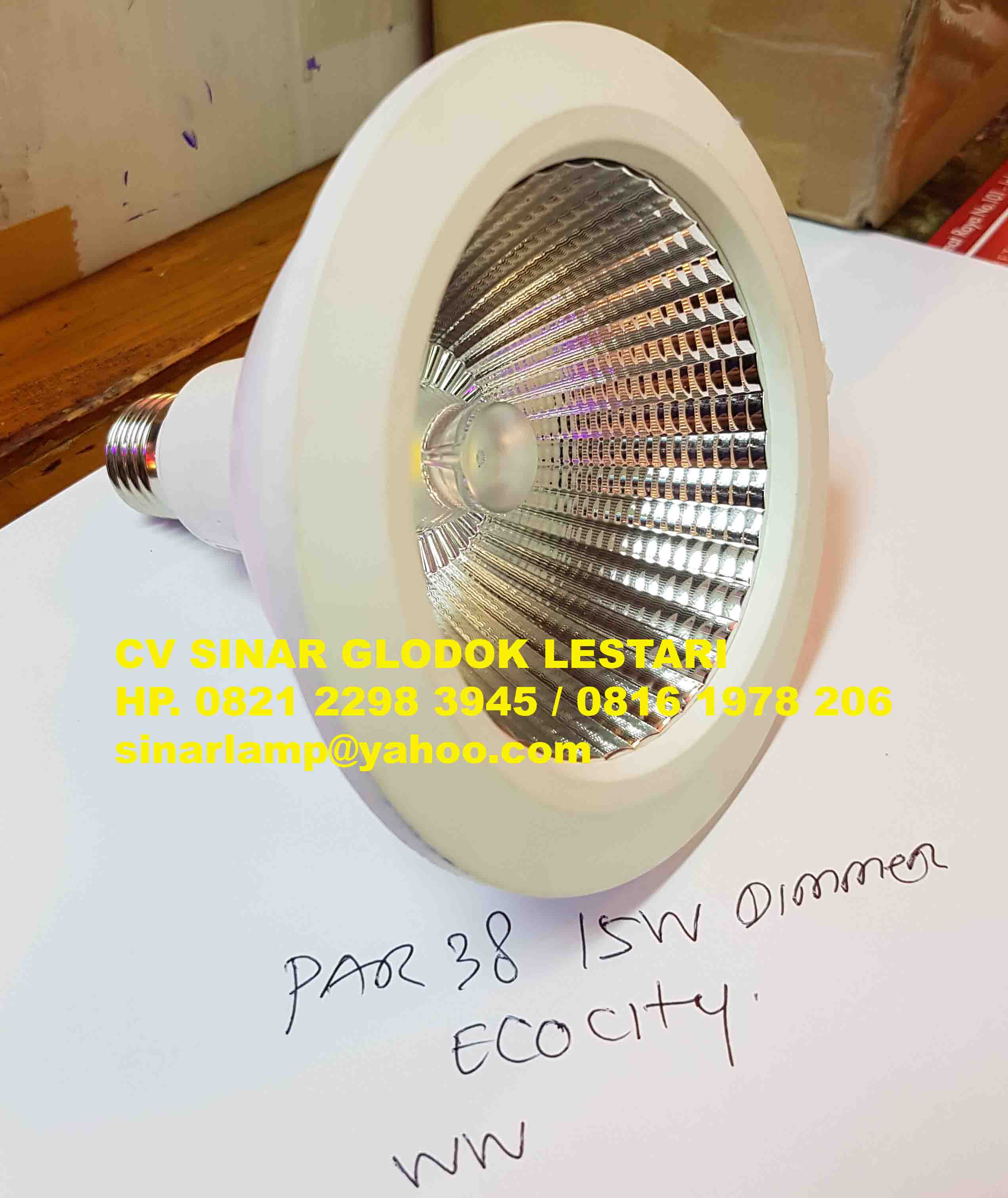 Lampu Led Par38 15W Dimmer Ecocity adalah lampu Led dimmable model par38 berkualitas 15 watt E27 super bright warmwhite untuk penerangan lampu sorot atau interior plafon atau interior downlight yang bisa di dimmer lampunya