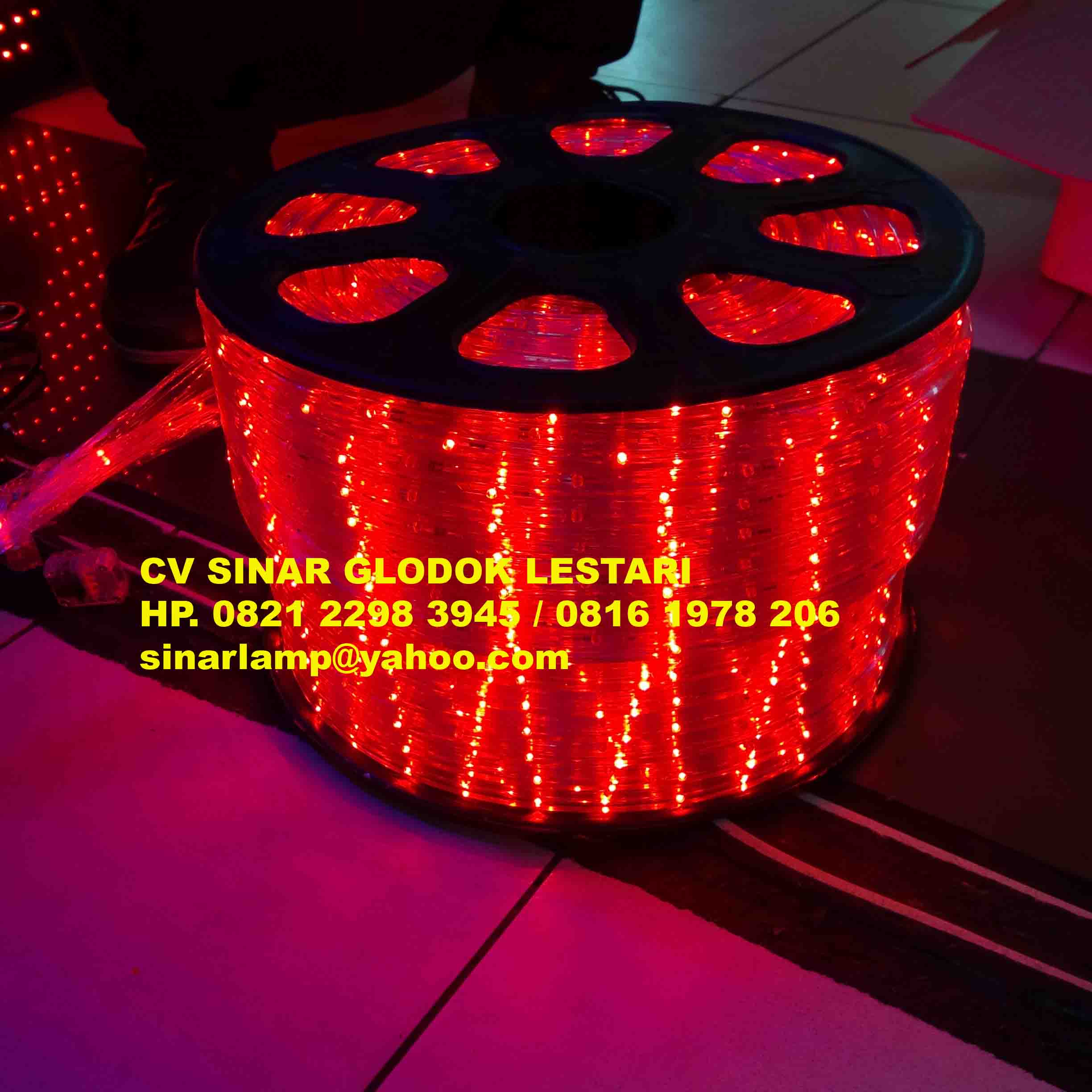 Lampu Selang LED Bulat warna Merah 3 jalur adalah lampu led rope lights atau lampu selang led model bulat cahaya warna merah, untuk desain interior yang inovatif hias dekorasi indoor atau outdoor pencahayaan artistik